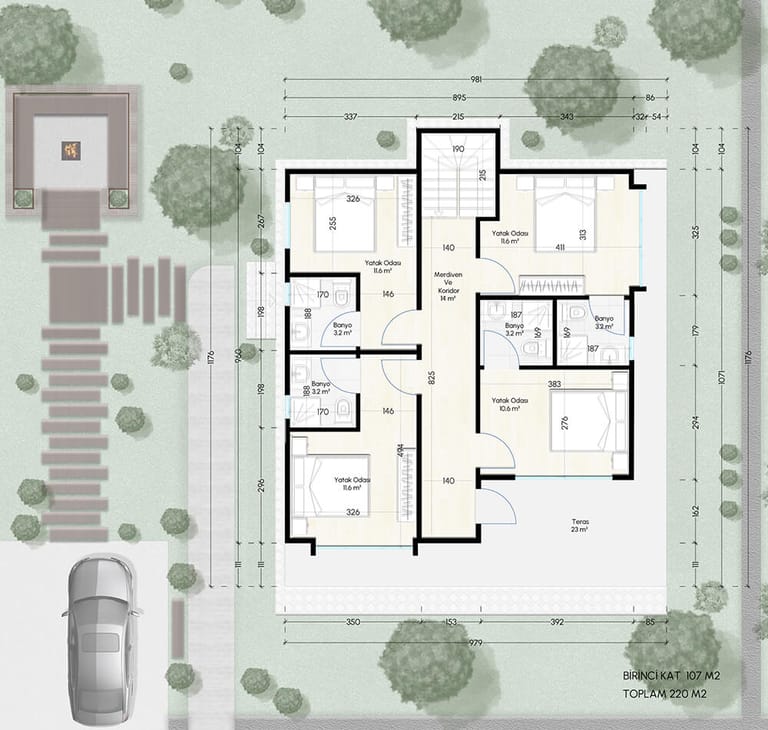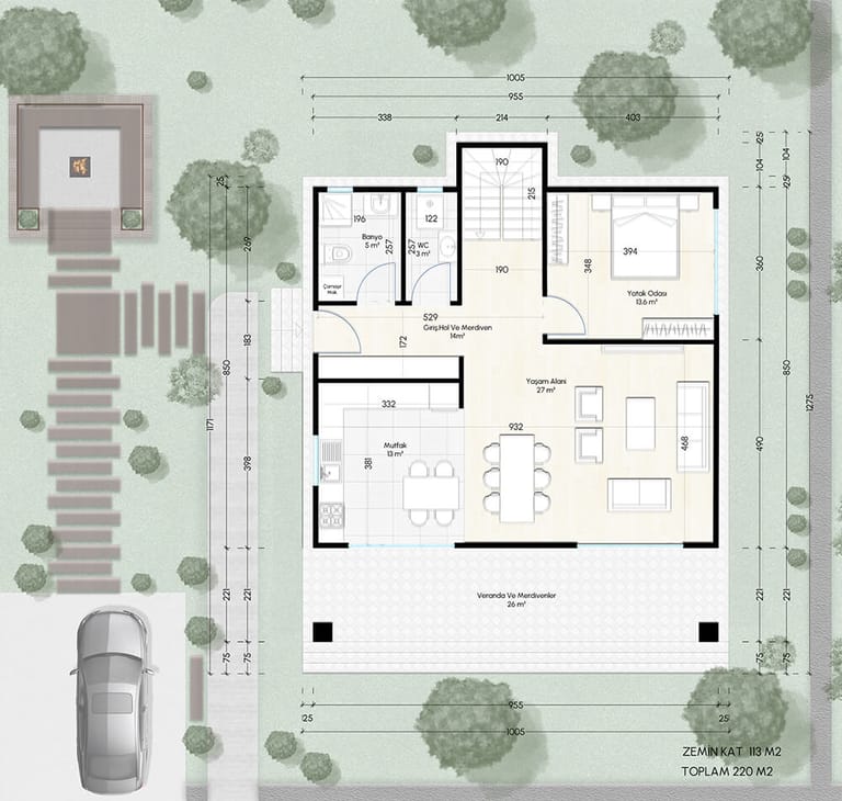 Bu özel modern villa, iki katlı zarif mimarisiyle dikkat çekiyor. Geniş camlar sayesinde gün ışığıyla dolup taşan yaşam alanlarında ferahlığın keyfini çıkaracaksınız. Geniş balkonlar ve açık teras, doğayla iç içe bir yaşam deneyimi sunarken, villa çevresindeki yeşil alanlar sayesinde huzuru her an hissedeceksiniz. Şık tasarımıyla hem fonksiyonel hem estetik bir ortam sunan bu villa, konforlu yaşamı arayanlar için mükemmel bir seçenektir.